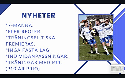 Vi kommer att träna tisdagar och torsdagar 17-18, det är kortare tid än vad vi hade i våras. Att bara träna en timme är en rekommendation från den utbildare på Skåneboll som besökte vår träning innan sommaren. Att vi kortar ner tiden ska förhoppningsvis göra att vi kan hålla fokus mera under träningen.